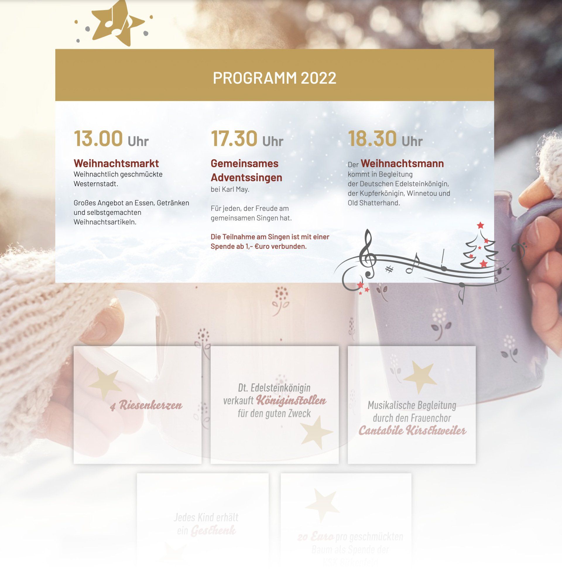 Traditionell am Samstag, vor dem 3. Advent, in diesem Jahr der 10. Dezember 2022 erstrahlt die Westernstadt und die Freilichtbühne im weihnachtlichen Ambiente.